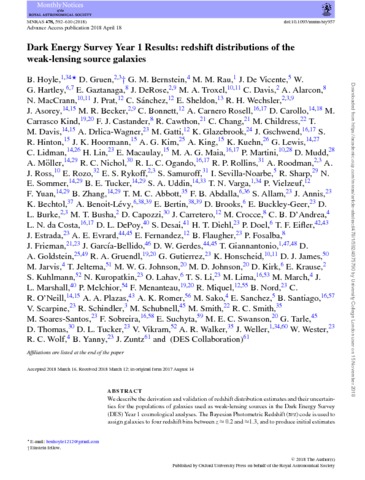 Dark Energy Survey Year 1 Results: redshift distributions of the weak-lensing source galaxies.