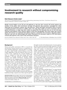 Health research funders in the UK now ask applicants to state how their research will involve patients and members of the public. Such involvement can help with questions that researchers repeatedly face: about improving trial recruitment, response rates and follow-up. Patient and Public Involvement (PPI) in research is usually presented in the form of a ladder, from a low rung where studies are led by researchers with no patient involvement, to a high rung where studies are patient-led. This hierarchy does not sit well with many clinicians and academics whose expertise appears to have been downgraded. This article argues that research quality and relevance are optimised when patient expertise is integrated with researchers' and policy-makers' expertise, and each role acknowledged and valued, illustrated by an alternative model for PPI which places research and expertise at the centre of the involvement enterprise.