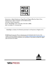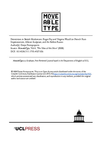 Primitivism in British Modernism: Roger Fry and Virginia Woolf on French Post-Impressionists, African Sculpture, and the Ballets Russes.