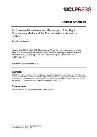 Title: | Book review: Nicole Hemmer, Messengers of the Right: Conservative Media and the Transformation of American Politics |