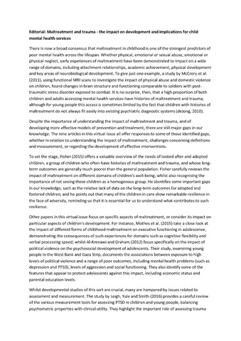 Maltreatment and trauma - the impact on development and implications for child mental health services.