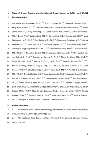 Title: | Risks of Breast, Ovarian, and Contralateral Breast Cancer for BRCA1 and BRCA2 Mutation Carriers |