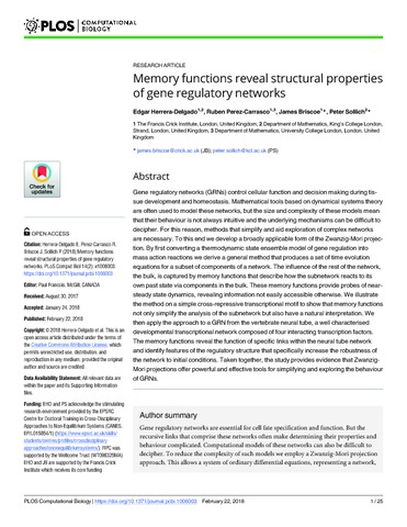 | Title: | Memory functions reveal structural properties of gene regulatory networks |
