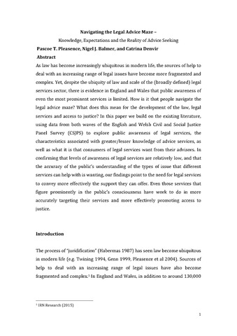 Title: | Navigating the Legal Advice Maze – Knowledge, Expectations and the Reality of Advice Seeking |