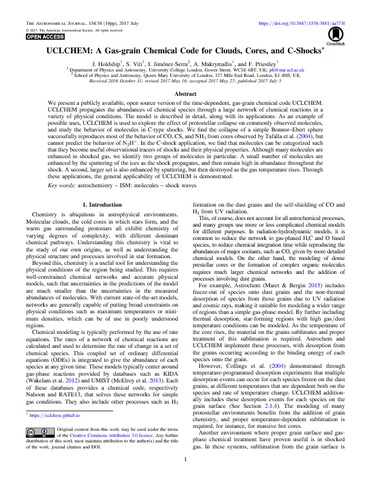 | Title: | UCLCHEM: A Gas-grain Chemical Code for Clouds, Cores, and C-Shocks |