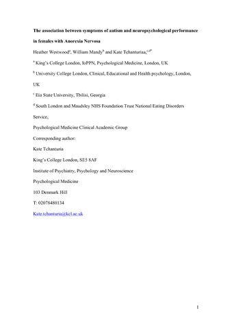 The association between symptoms of autism and neuropsychological performance in females with Anorexia Nervosa.