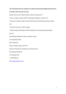 Title: | The association between symptoms of autism and neuropsychological performance in females with Anorexia Nervosa |