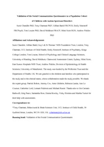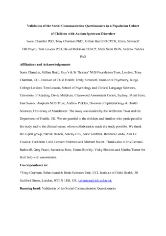 Title: | Validation of the social communication questionnaire in a population cohort of children with autism spectrum disorders |