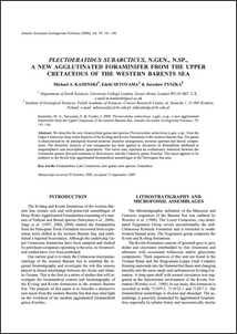 Title: | Plectoeratidus subarcticus, n.gen., n.sp., a new agglutinated foraminifer from the Upper Cretaceous of the western Barents Sea |