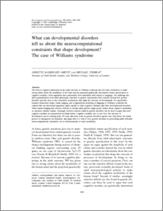 Title: | What can developmental disorders tell us about the neurocomputational constraints that shape development? The case of Williams syndrome |