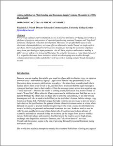 World-wide calls for improvements in access to journal literature are being answered by a plethora of projects and services. Consortial purchasing, national licences and "big deals" dominate changes in collection development. Moves to set up affordable easy-to-use electronic document delivery services offer an alternative model based on single-article purchase. More radical barrier-free access models are moving the economic emphasis away from purchasing to input-payments. Are all these projects and services making a difference or will access to journal literature be no better in years to come than it is now? It is arguable that only those initiatives which are developing new models through collaboration between the stakeholders will succeed in making a major break-through in access.