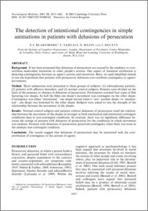 Title: | The detection of intentional contingencies in simple animations in patients with delusions of persecution |