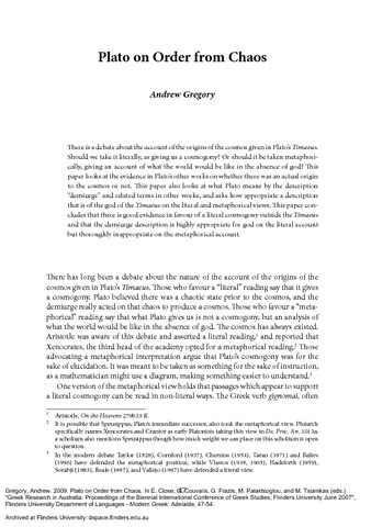 Title: | Plato on Order from Chaos |